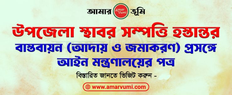 উপজেলা স্থাবর সম্পত্তি হস্তান্তর কর আদায়, আইজিআর তহবিলের অর্থ কর্তন ও জমাকরণ প্রসঙ্গে আইন মন্ত্রণালয়ের পত্র