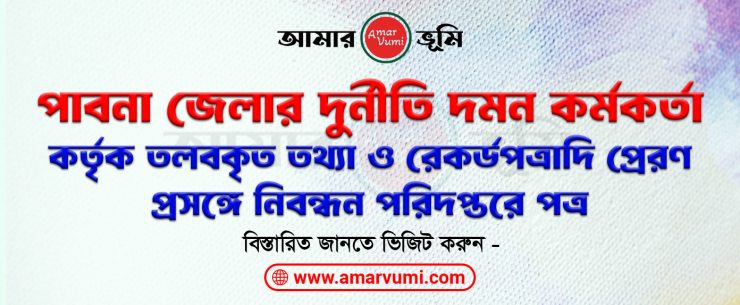 বিষয়ঃ পাবনা জেলার দুর্নীতি দমন কর্মকর্তা কর্তৃক তথ্য ও রেকর্ডপত্রাদি প্রেরণ প্রসঙ্গে।